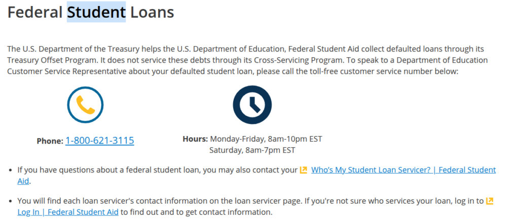 - – Federal Student Aid told me to contact US Department of Treasury to inquiry about reimbursement.
